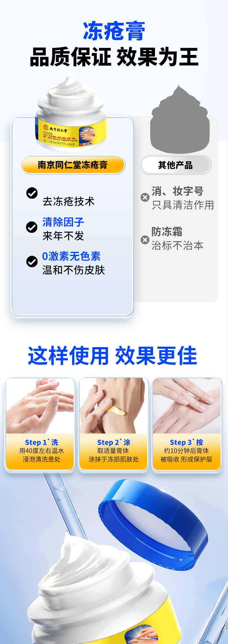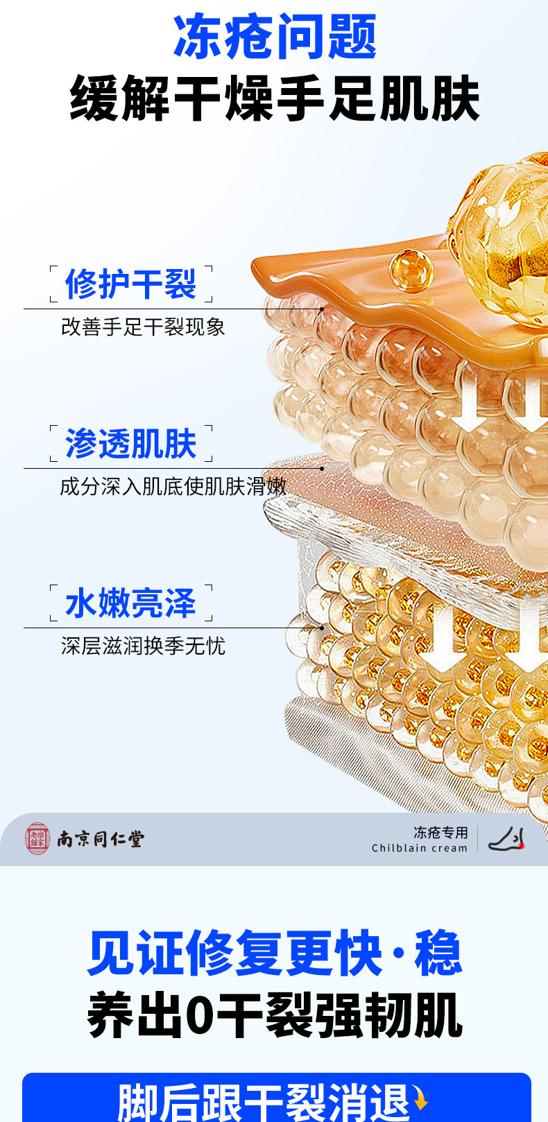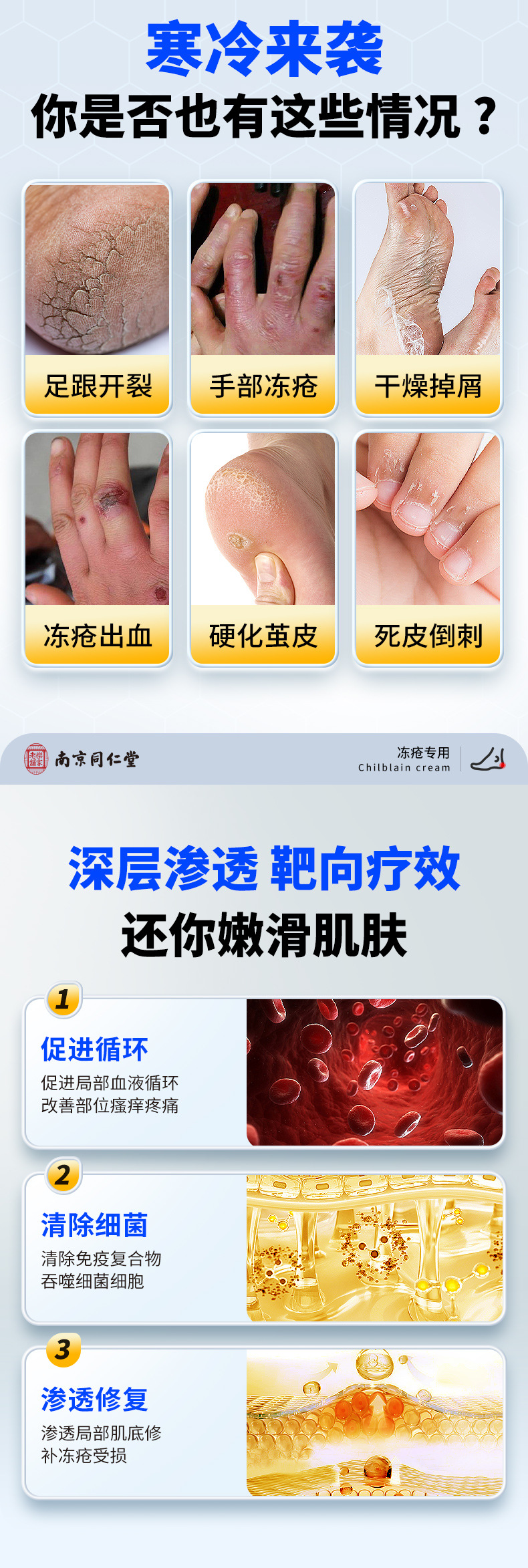 南京同仁堂凍瘡軟膏は、乾燥したかかと、ひび割れた手足、乾燥した肌を潤し、潤滑し、保湿し、かゆみを和らげる軟膏です。