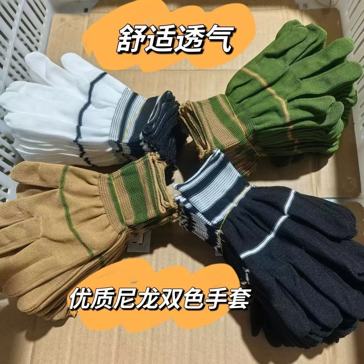 ナイロン2色クリーン電子工場作業手袋軽薄通気ニット滑り止め修理園芸労働保護手袋