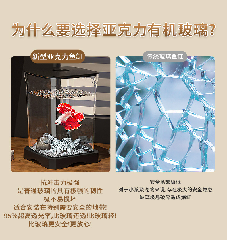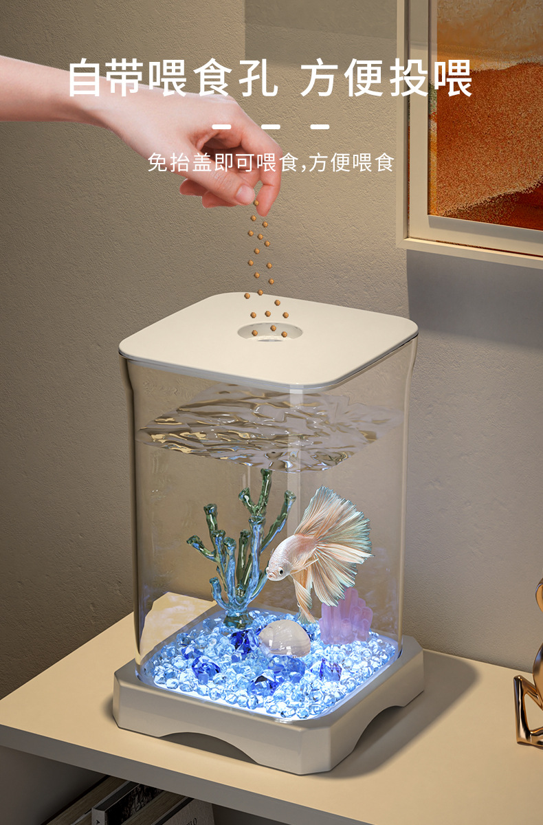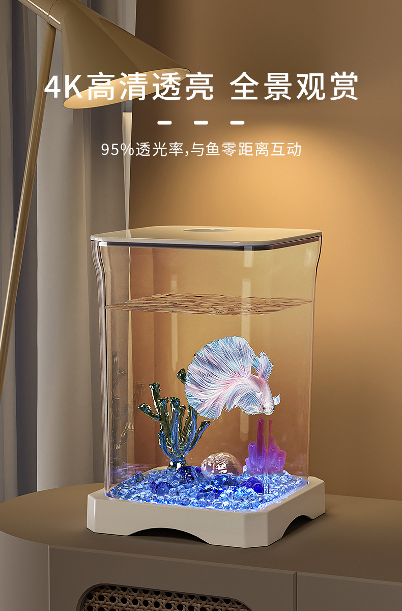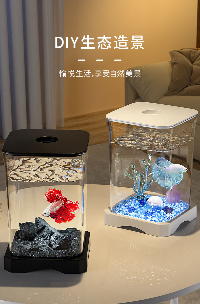 ダークスタイルクリスタル水槽造園パッケージベタ水槽サイレントクリエイティブデスクトップ水族館水交換不要超白色水槽