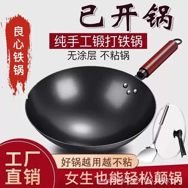 中華鍋、伝統的な鉄鍋、公式フラッグシップ、昔ながらの中華鍋、家庭用ノンスティックパン、ノンコートガスストーブ、鉄鍋に適しています