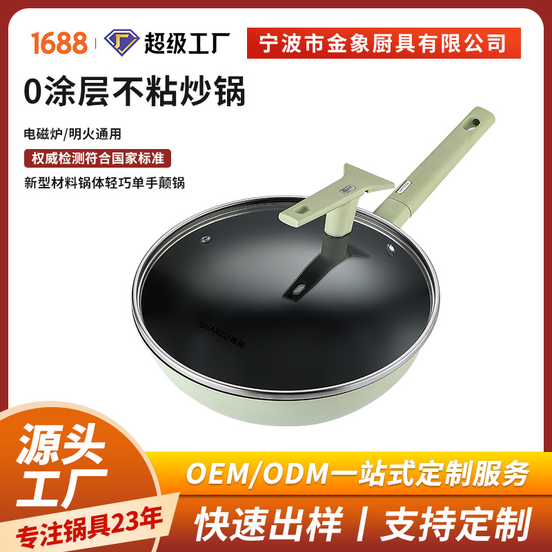 膳祖0涂层超炒锅 家用炒菜不粘等离子锅礼品锅具燃气灶电磁炉通用