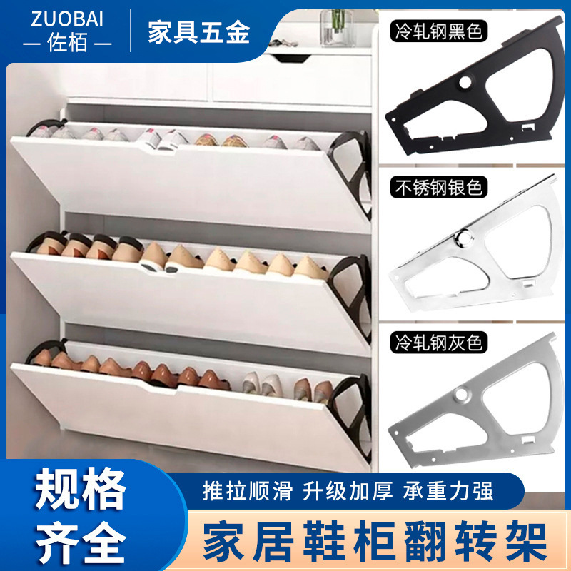 鞋柜翻斗架鞋柜翻转架家用翻斗柜暗藏式支架不锈钢加厚鞋柜配件