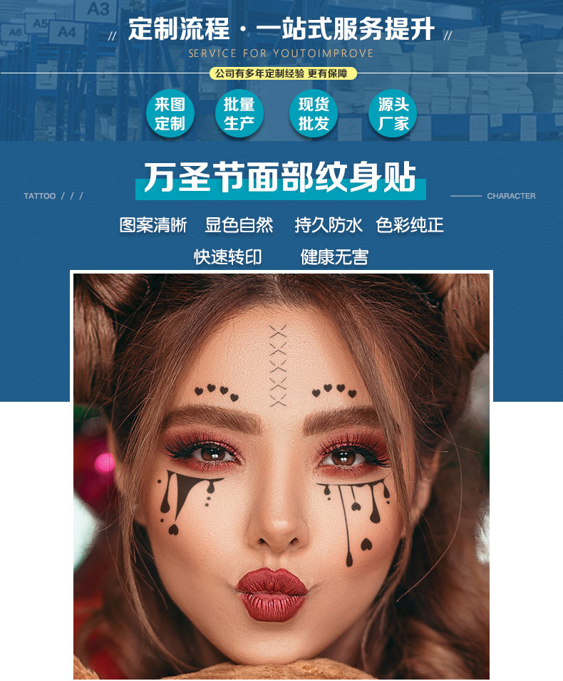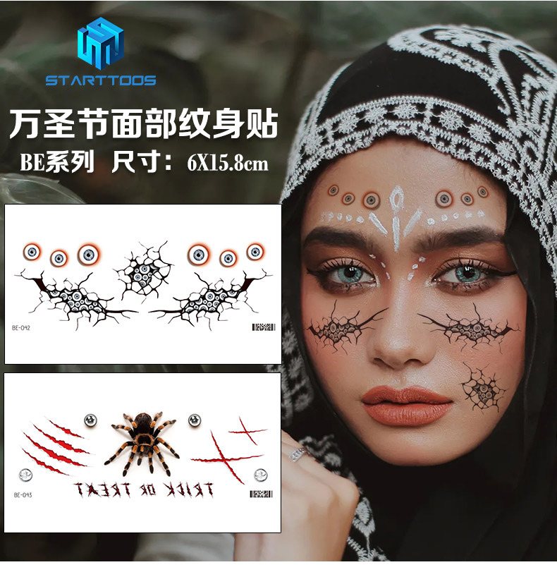 2025 ハロウィン新美容ステッカー創傷メイクパーティーフェイスステッカー防水タトゥーステッカータトゥーしかめっ面