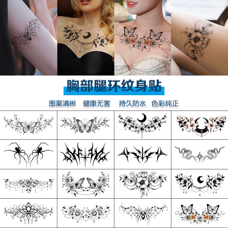 脚用タトゥーシール 女性用 胸元 セクシーな花柄 蝶々 ins風 レディースタトゥーシール 防水 長持ち リアルなins風
