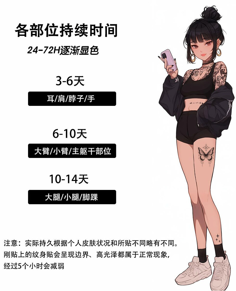 動物黒と白の使い捨てタトゥーステッカー美しい女性のタトゥーステッカーファッション美的パーソナライズされたパターン女性のタトゥーステッカー