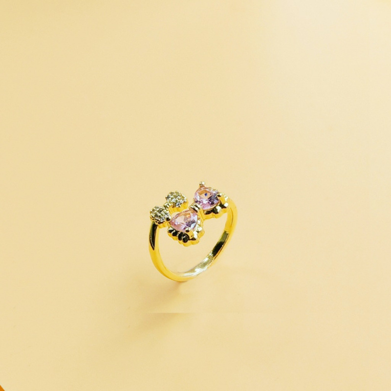 新商品の甘いクールなピンクのダイヤモンドの蝶結びの開口指輪は甘くて精巧で、調整できます。