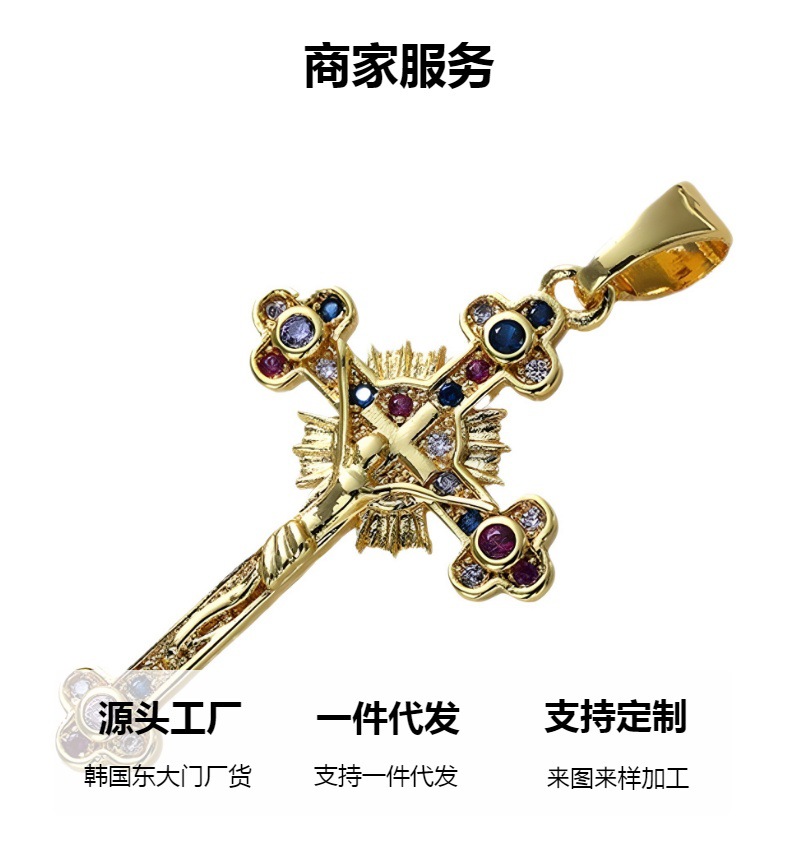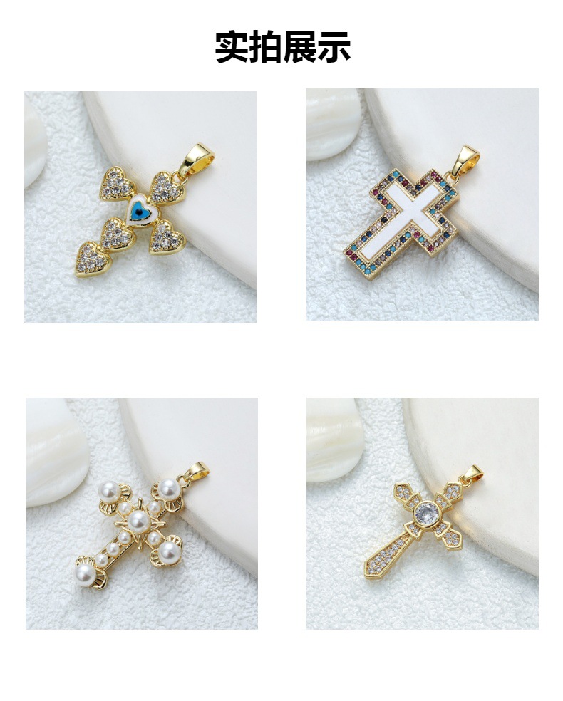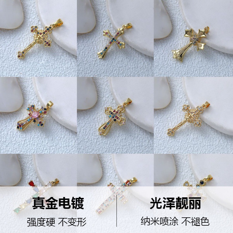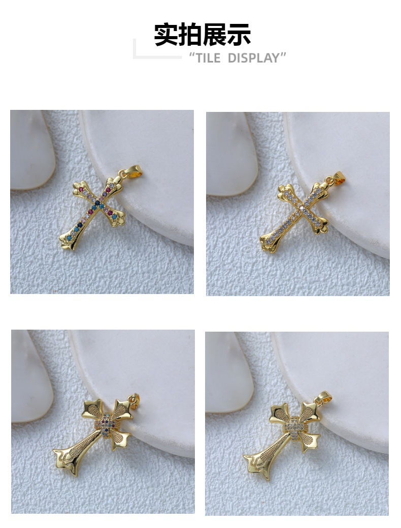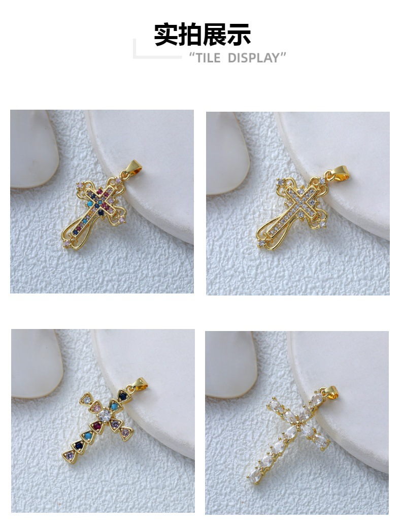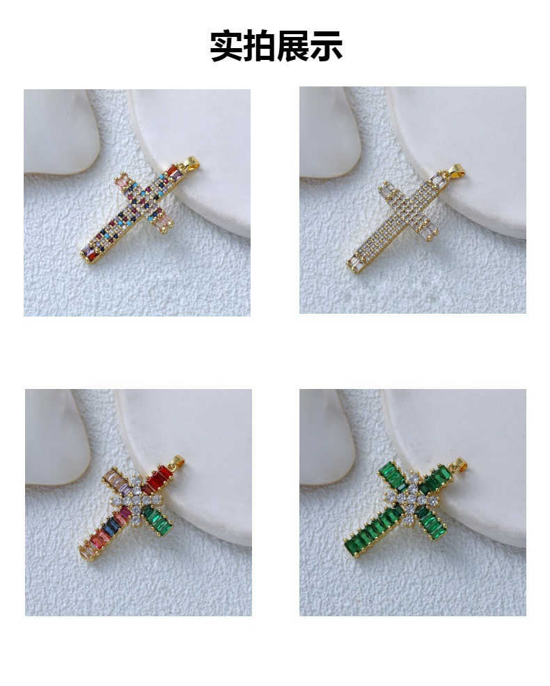ネックレス女性のクロスボーダーホットスタイルクロスペンダントネックレスカラフルなジルコニウム銅マイクロ象嵌ジルコンペンダントイン鎖骨ペンダント