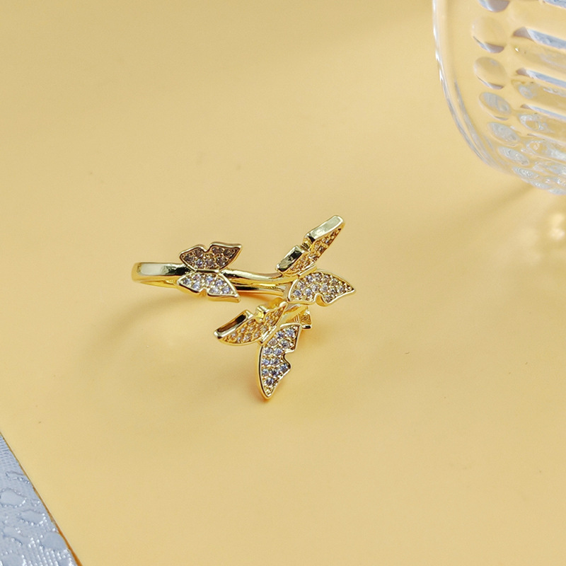 国境を越えた新しい立体蝶の開口指輪の甘いクールな風がジルコンの指輪をはめ込んでいる