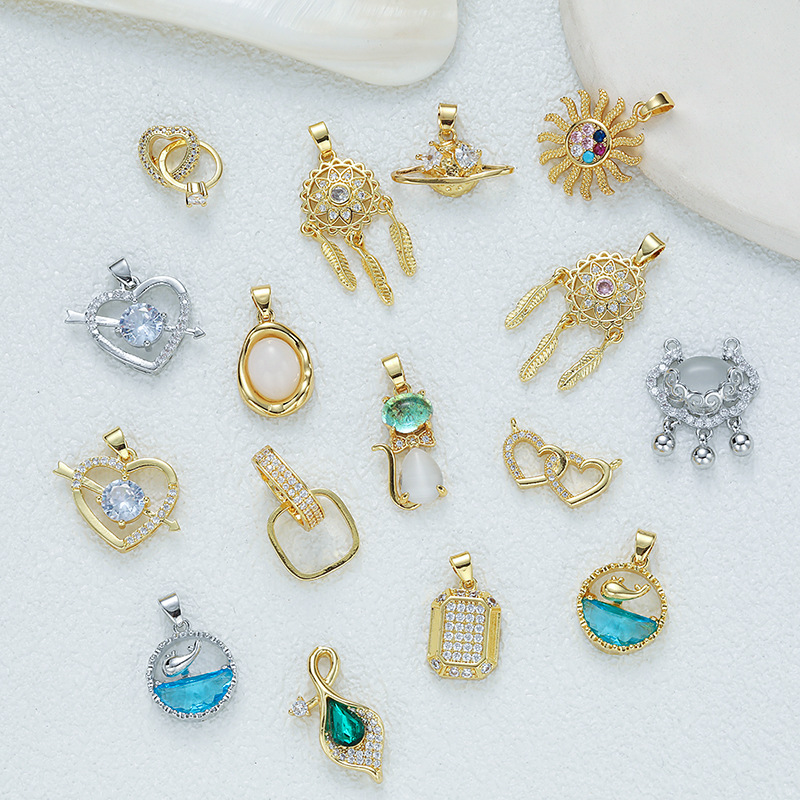 欧米の国境を越えて爆発した環境保護銅の小型ジルコンのペンダントは色の愛の金の銅の金メッキのネックレスのペンダントの部品を保証します。