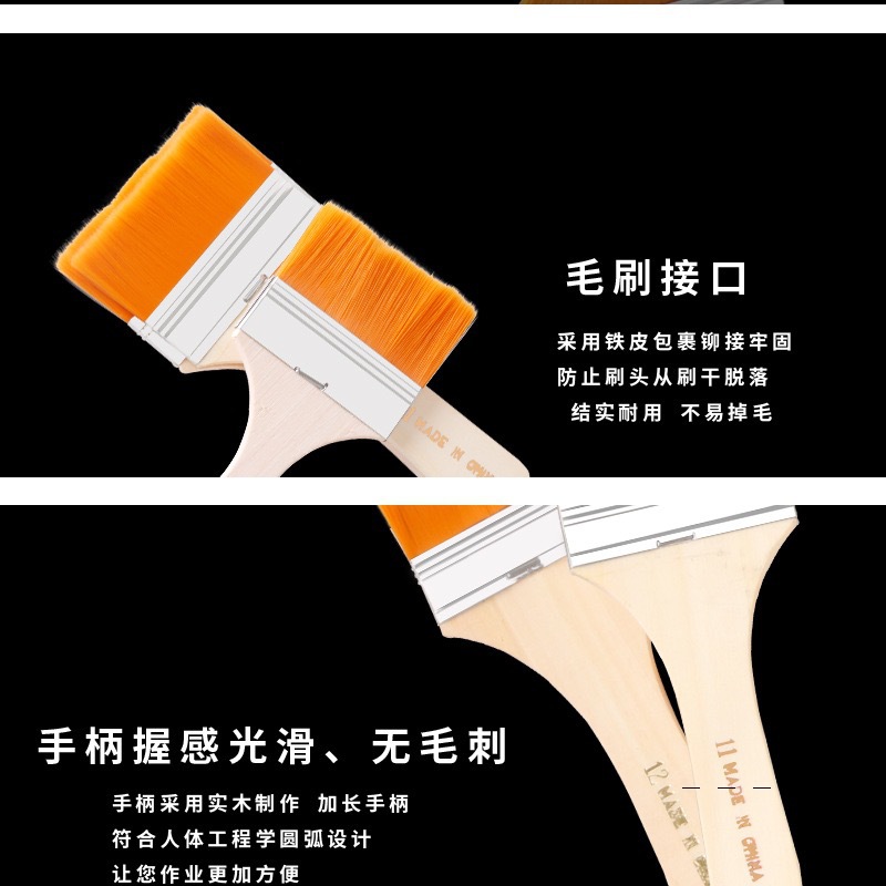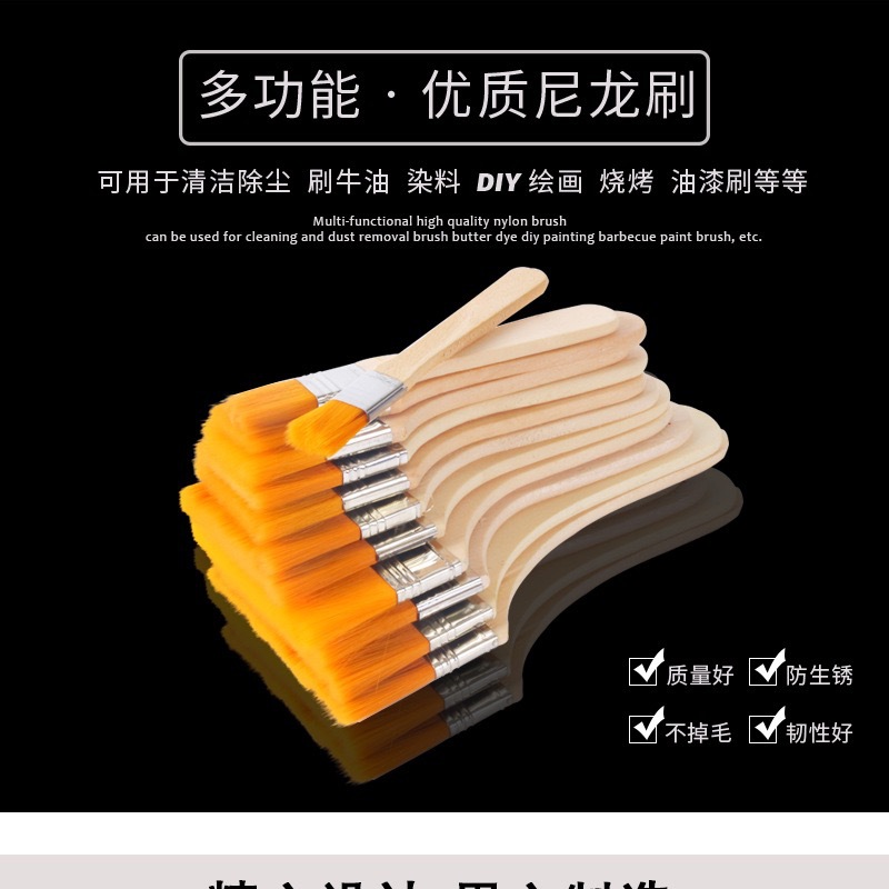 メーカー卸売りナイロン油絵板ブラシ木柄アクリル画ブラシ
