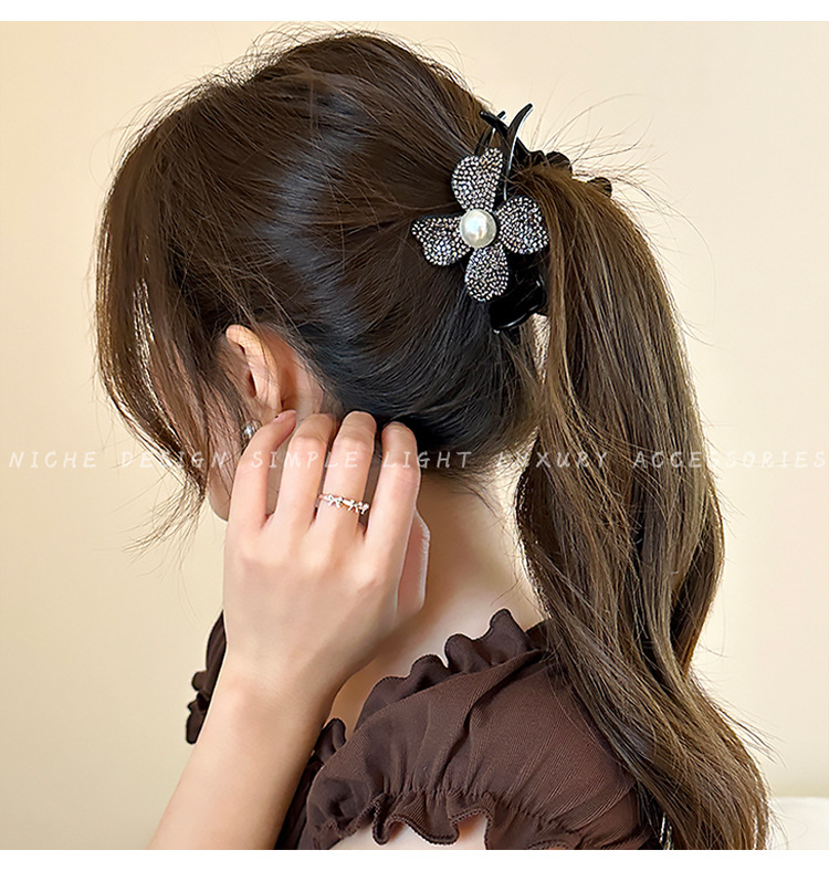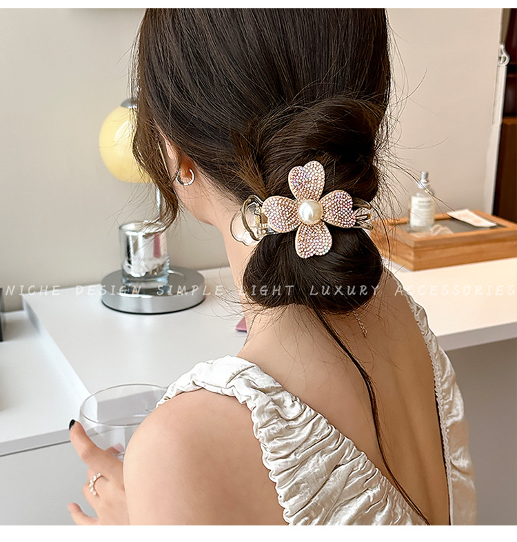 满钻珍珠四叶草抓夹花朵发夹丸子头发饰高马尾固定扭扭三齿夹头饰