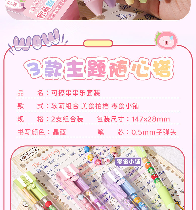 カバベア串串楽消せるペン熱感応式プッシュ式モイイ消せるゲルペン小学生向け漫画速乾クリスタルブルーペン芯