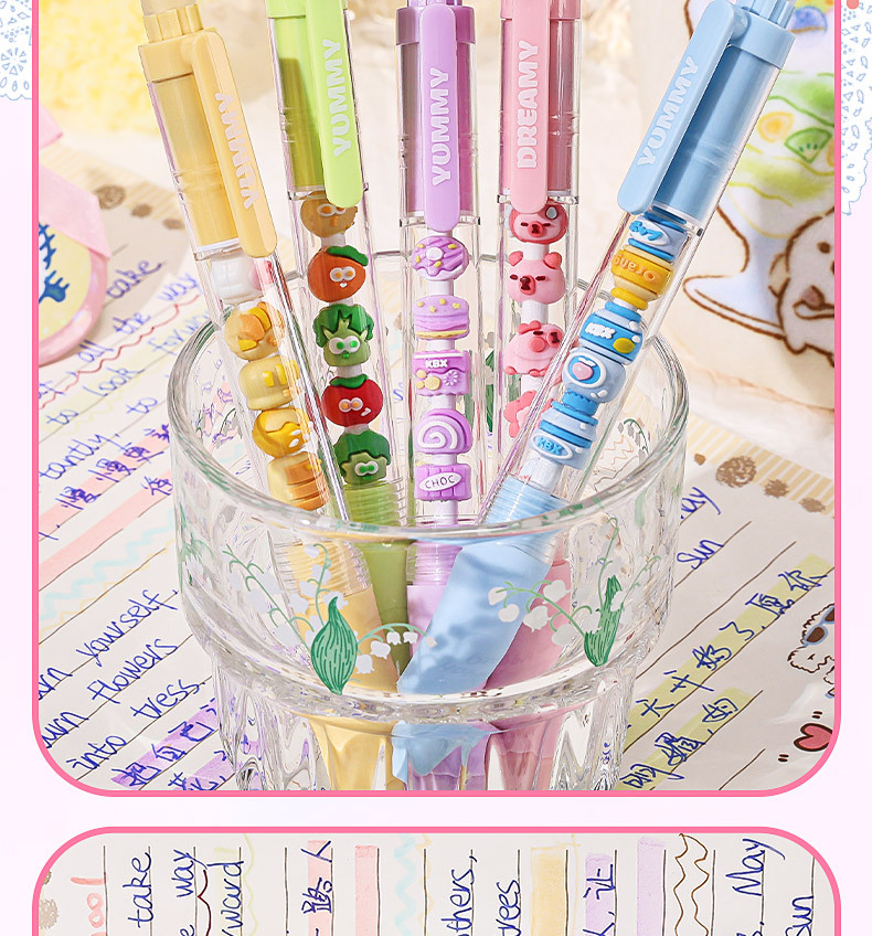 Kaba Bear ゲルペン滑らかで高見えするかわいいシリコンシース学生試験ブラシペン diy ストリングビーズペン
