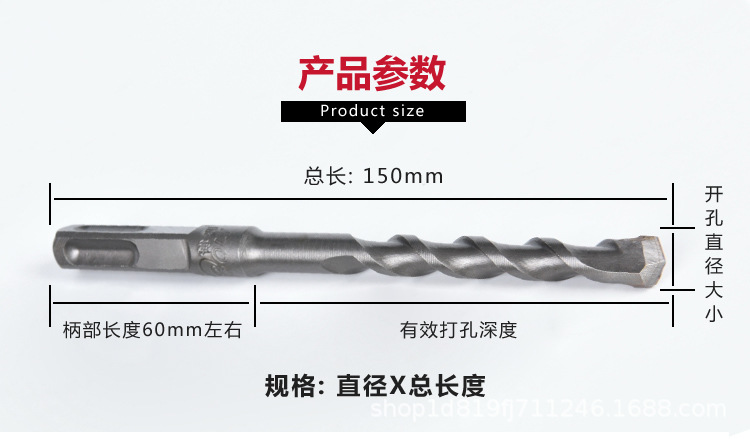 方大王ドリル延長衝撃ハンマードリルコンクリート両坑溝丸柄四坑角柄壁角頭