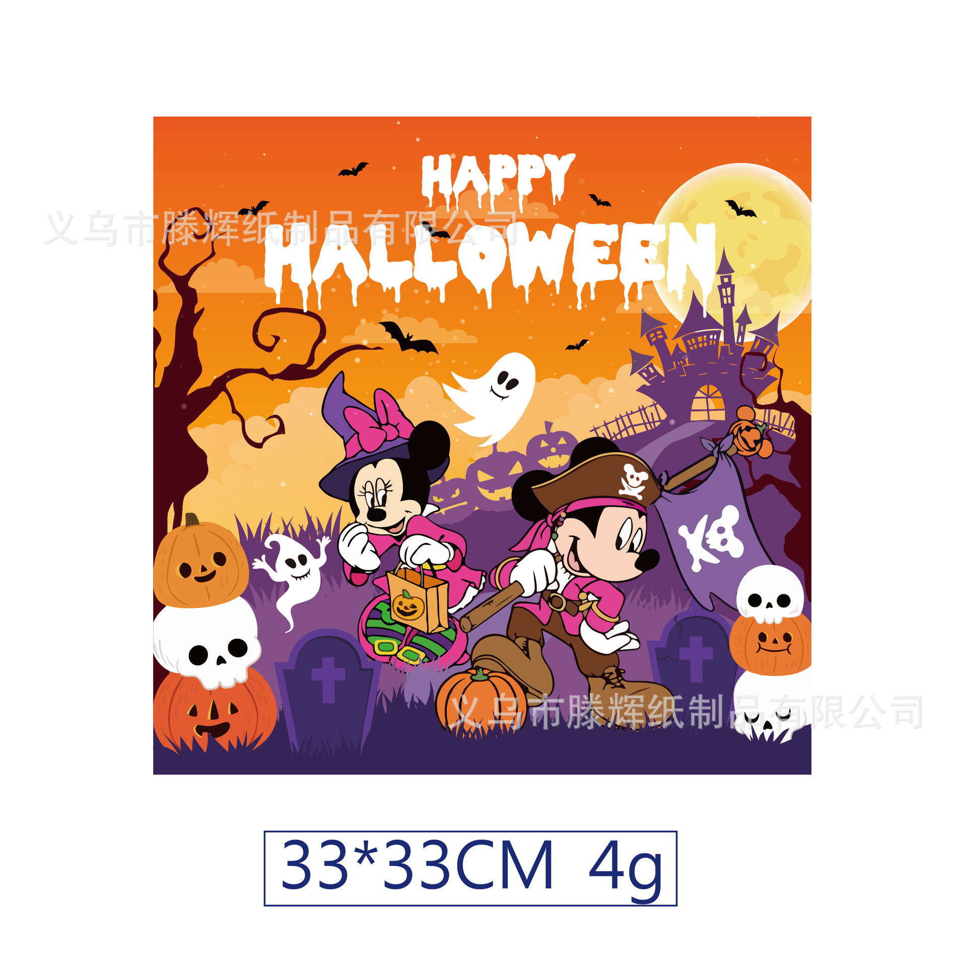 現物の新型ミッキーマウスのハロウィーンのテーマの上光油は膜のセットの紙皿の紙コップのティッシュの食器用品を覆いません。