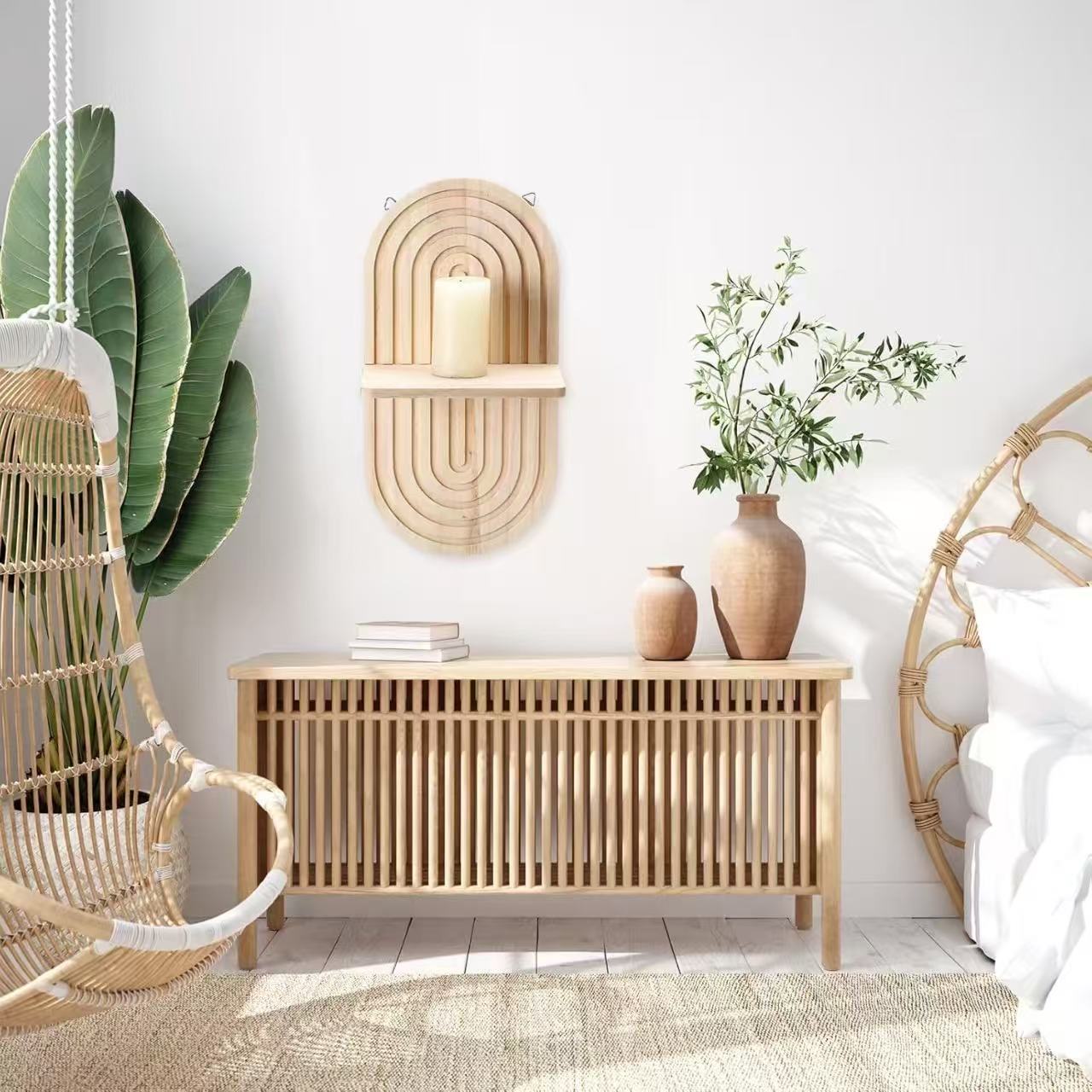 北欧木製壁棚リビングルーム背景壁緑植物吊り花ラック B&B リビングルーム吊り装飾収納ラック