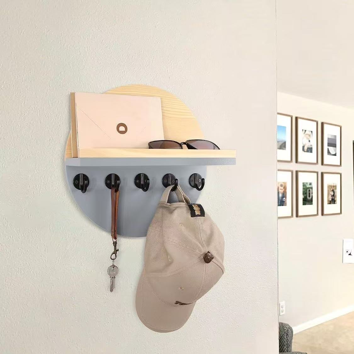 クロスボーダー木製キーラック壁カントリースタイルメール収納ラックラウンドドア玄関フック無垢材ハンガー
