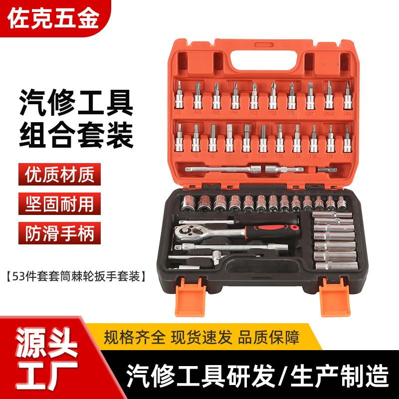 53 個の自動車修理およびメンテナンスツールボックスハードウェアコンプリートセットソケットレンチコンビネーションセットハードウェアショップ供給卸売
