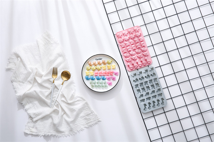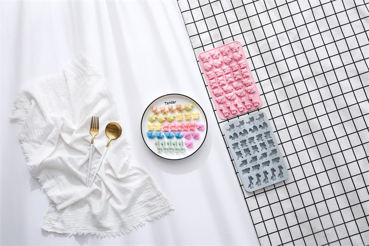 現物31連7種類の異なる動物の形のシリカゲル金型滴糊焙煎チョコレート金型ソフトキャンディケーキ金型