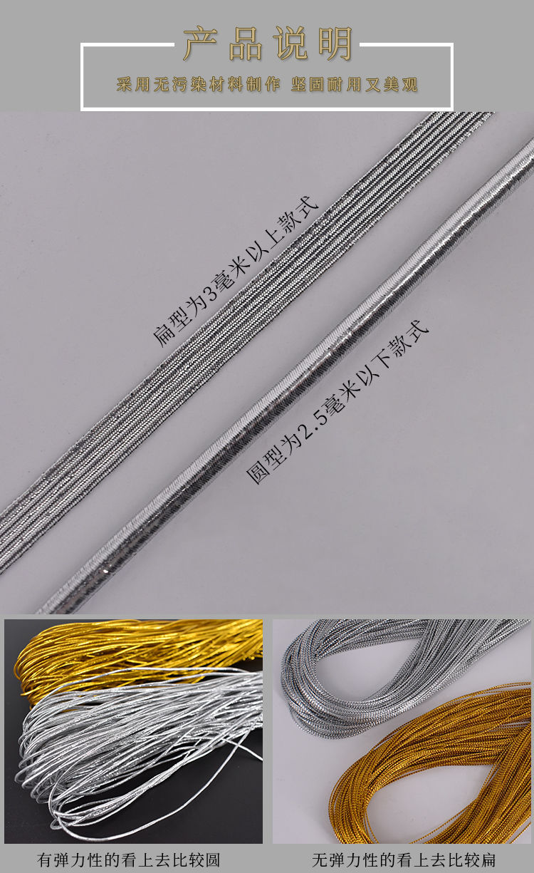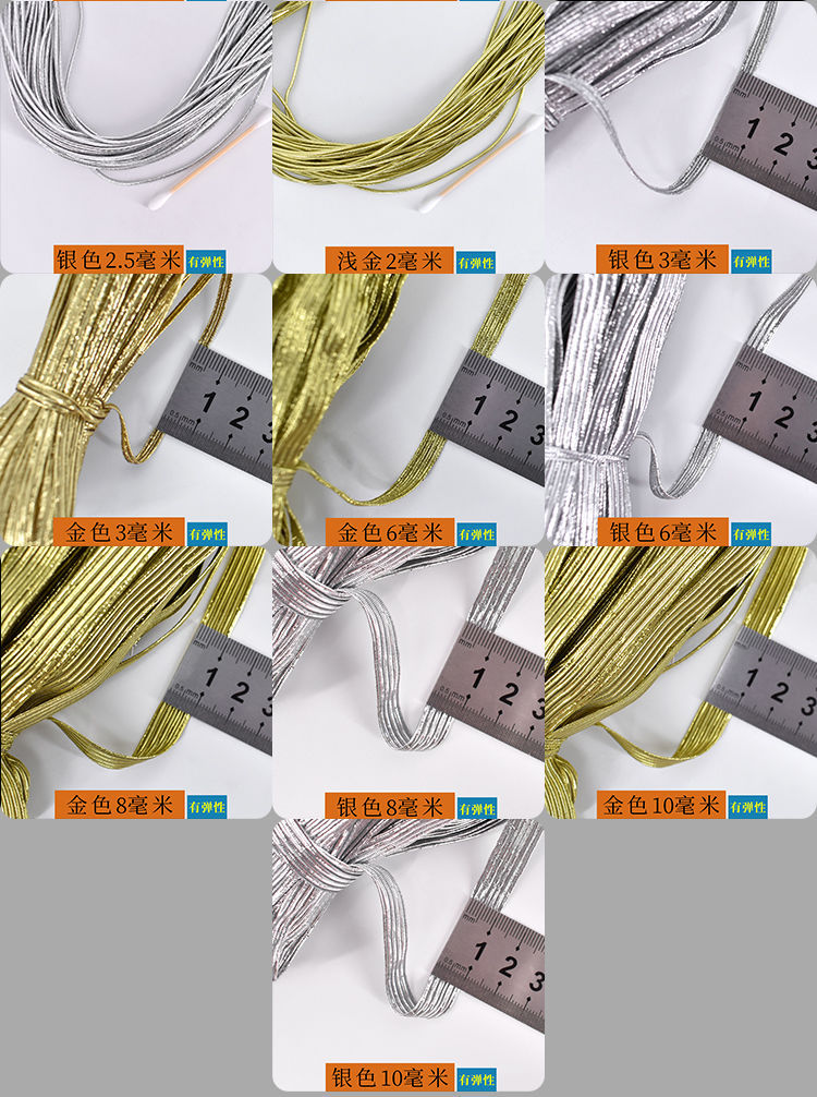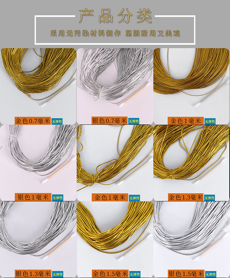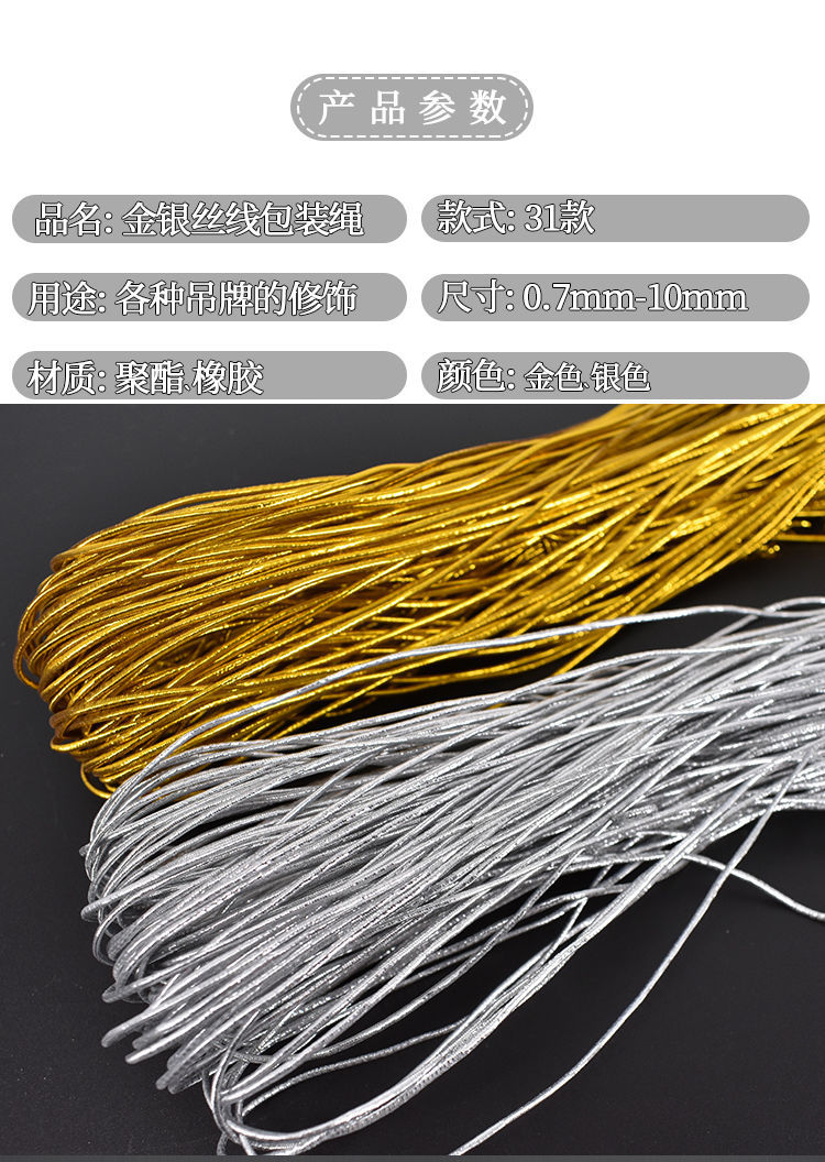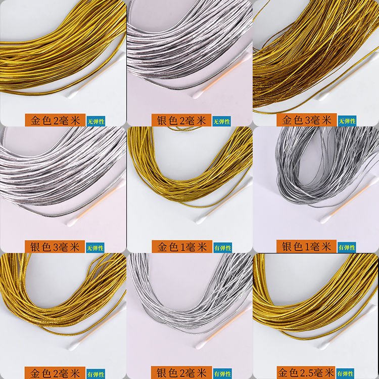 国境を越えた金銀糸弾力ロープ0.8-2.0mm円弾力線金銀銀色弾力テンションハンギングロープ卸売り