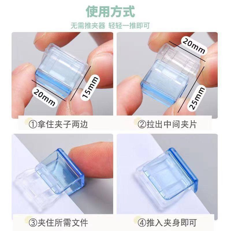 プッシュクリップ透明カラークリップオフィスファイルスライドクリップ学生の答案資料収納固定クリップ