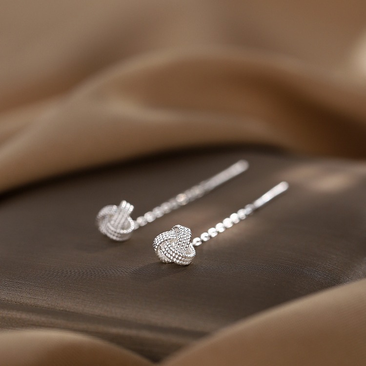 如意結流蘇耳線女性シンプルファッション個性百合気質S925銀メッキ針イヤリングピアス