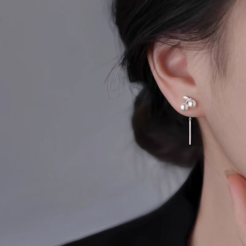 925 シルバー針パールチェリー耳ライン女の子のための 2025 新しいホットスタイルライト高級ニッチショートタッセルイヤリング