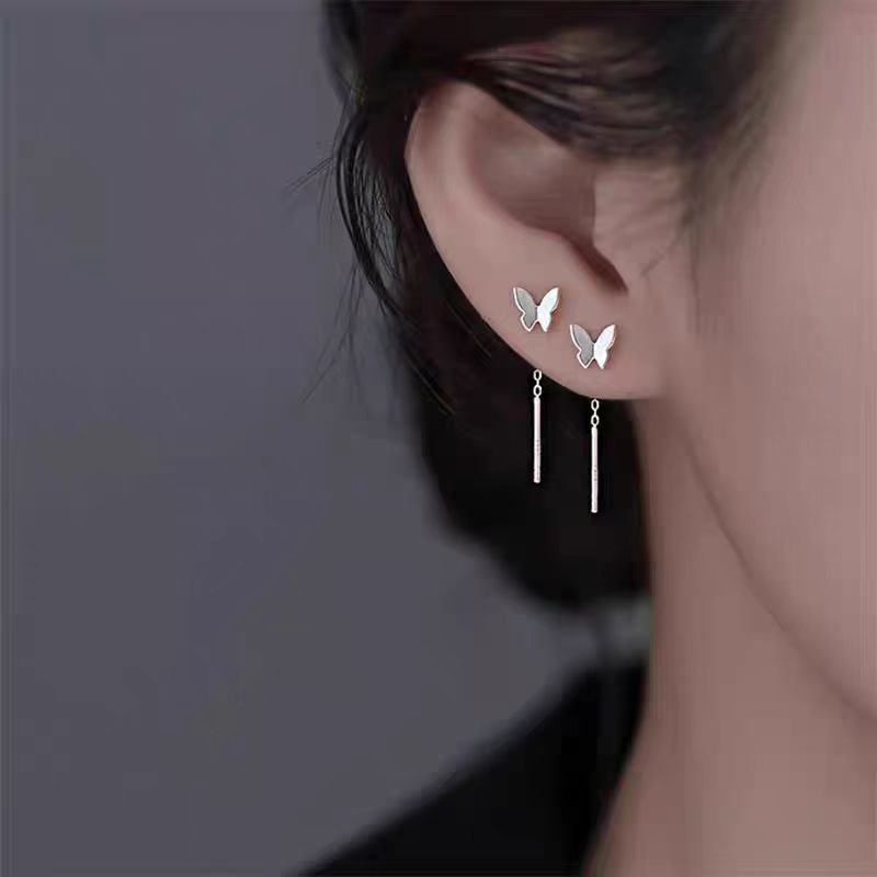925銀の針の蝶の耳の線の女性の大衆の気質の高級感のイヤリング2025年の新型の潮の甘いショートタイプの耳飾り