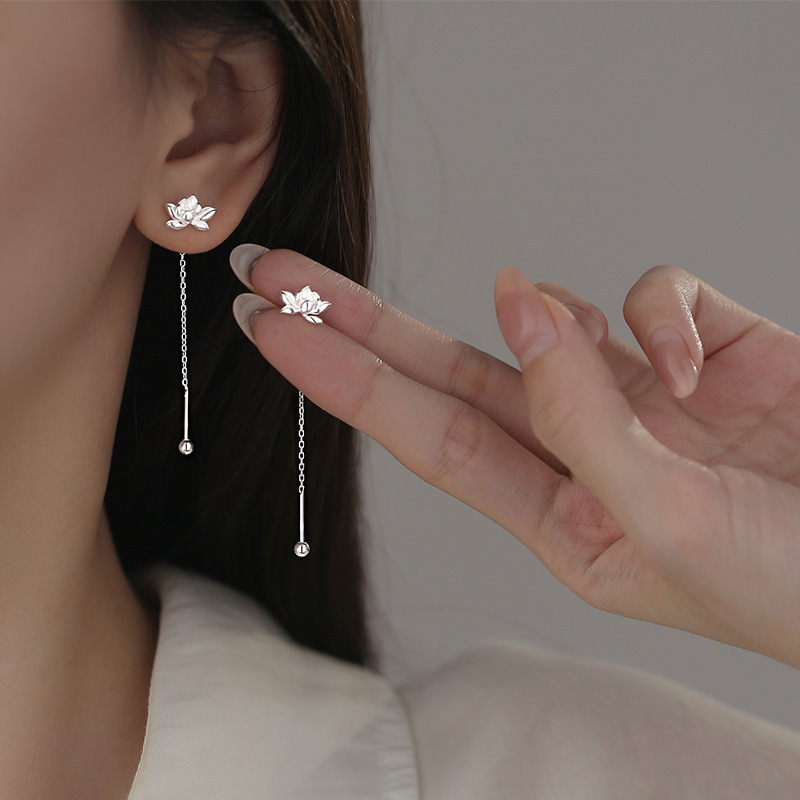 925 シルバー針蓮耳ライン女性の新デザイン新中国国民スタイルファッション気質蓮のイヤリング