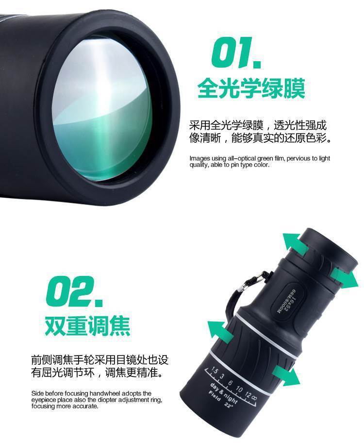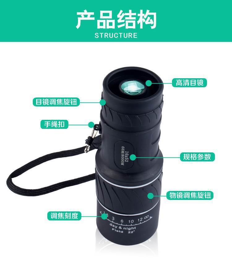 メーカー卸売単眼望遠鏡 16x52 高精細高出力低照度ナイトビジョン携帯電話写真コンサート屋外