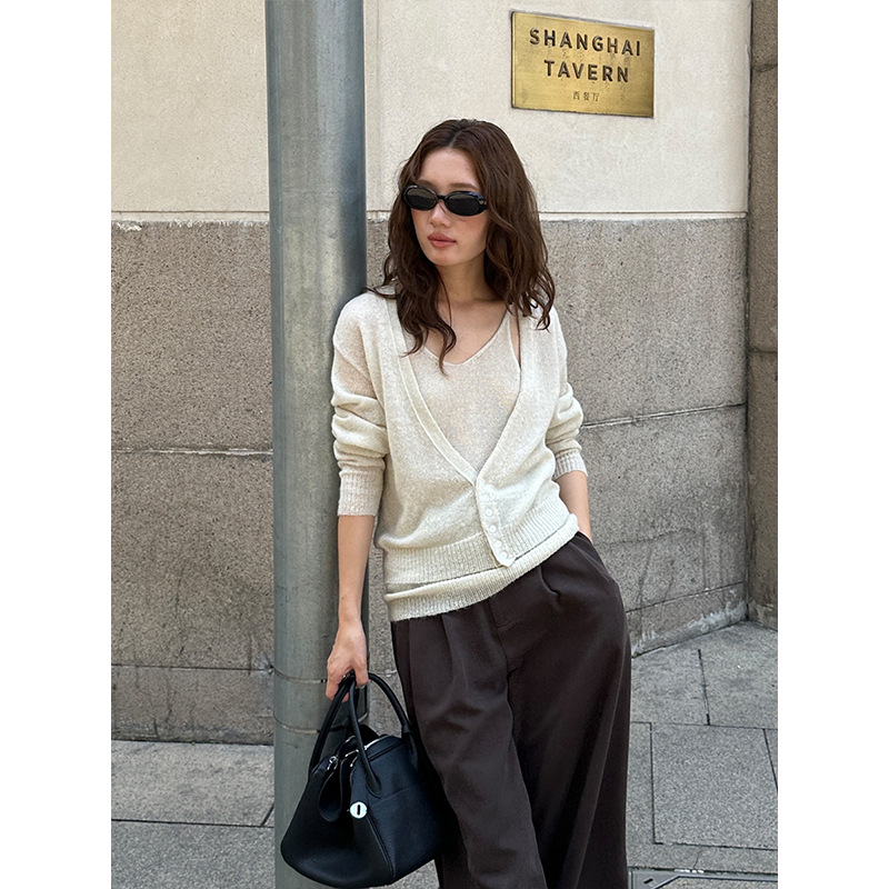 THE MIND羊驼毛小吊带+开衫毛衣两件套2025秋新款时髦针织衫T5387
