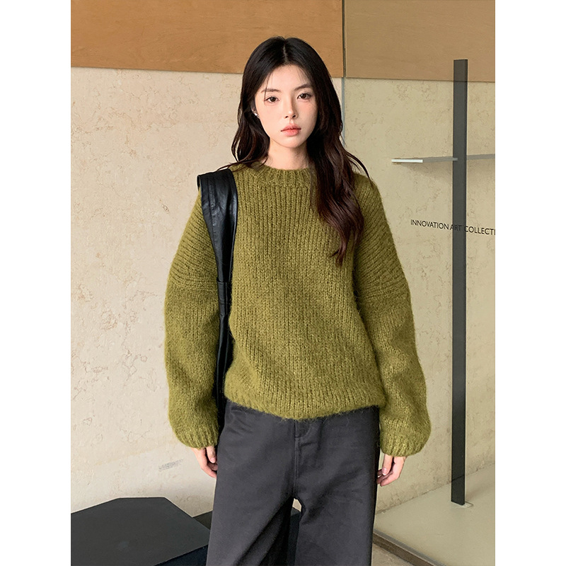 【広州6m】アルパカウールのゆったりとしたセーター2025冬服韓国版シンプル長袖ラウンドネックトップスM9253