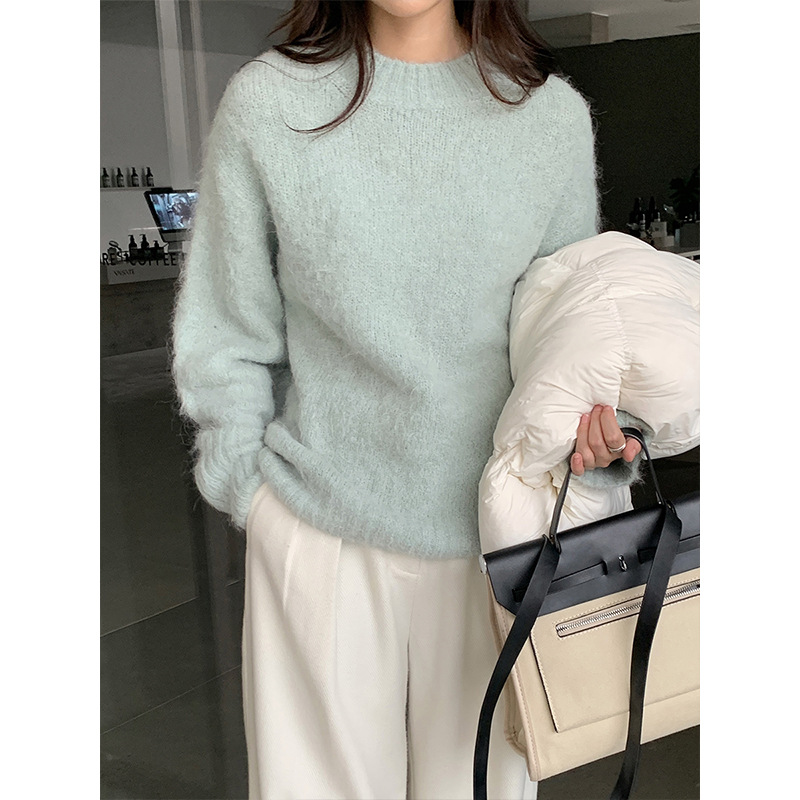 THE MIND アルパカソフトワックスプルオーバーセーター 2025 冬の新韓国スタイルミニマリスト長袖トップ女性 M9253A