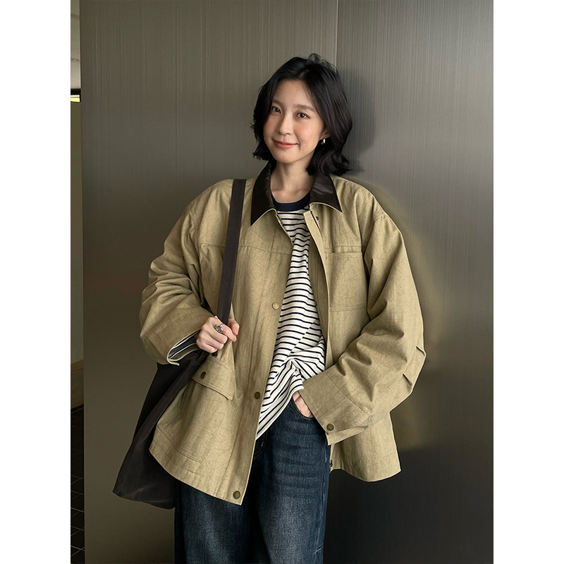 THE MIND复古工装风翻领夹克2025十三行冬季新款中长款外套T5721D