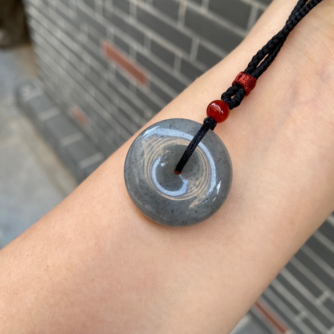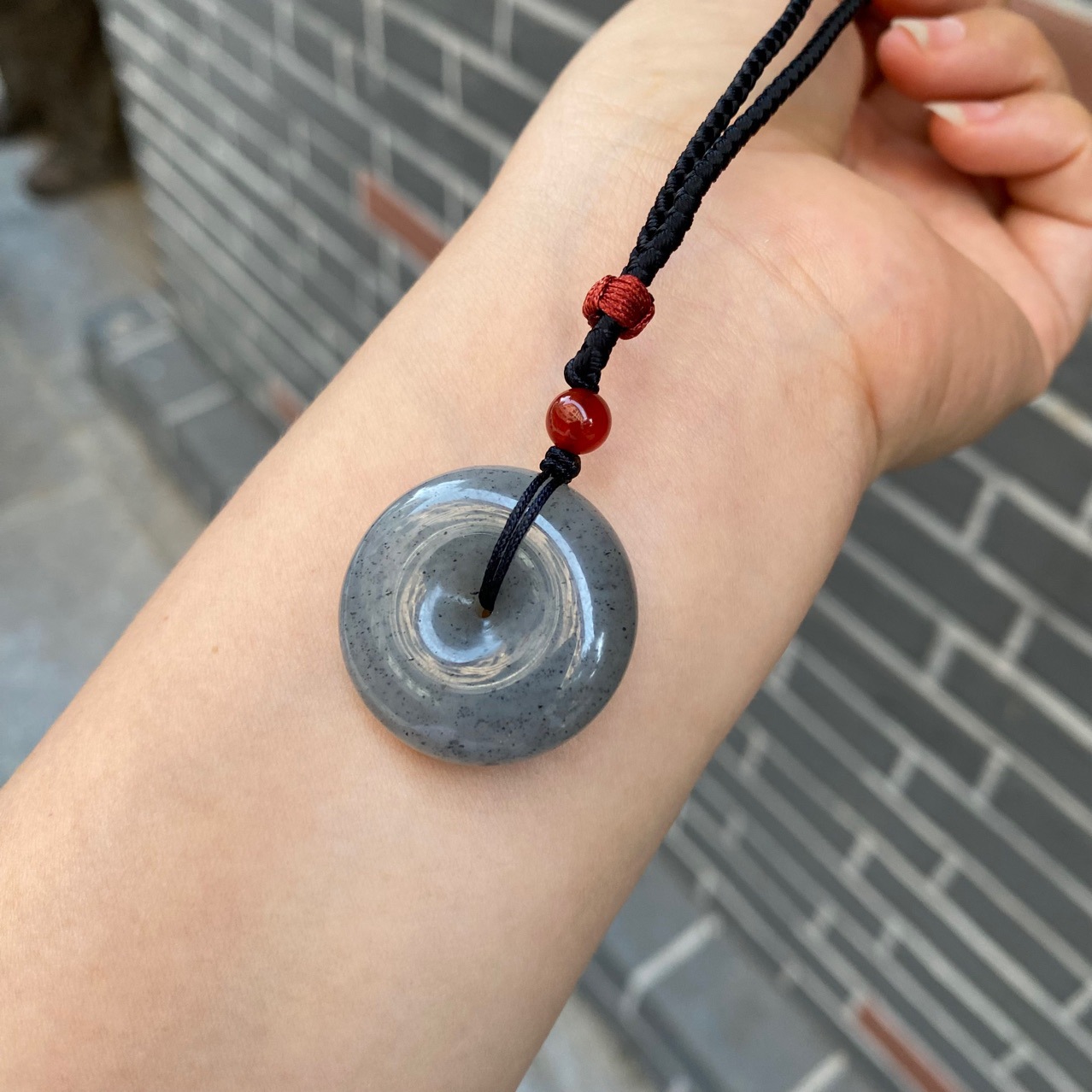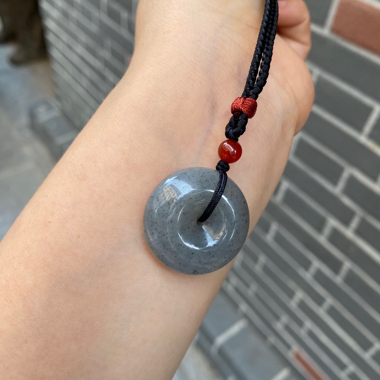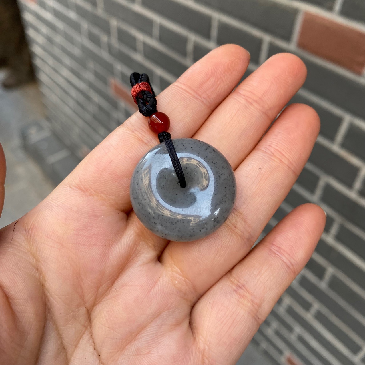 天然新疆青花平安ボタンペンダント和田玉水墨円ボタン種子材料平安ボタン女性男性ペンダントネックレス