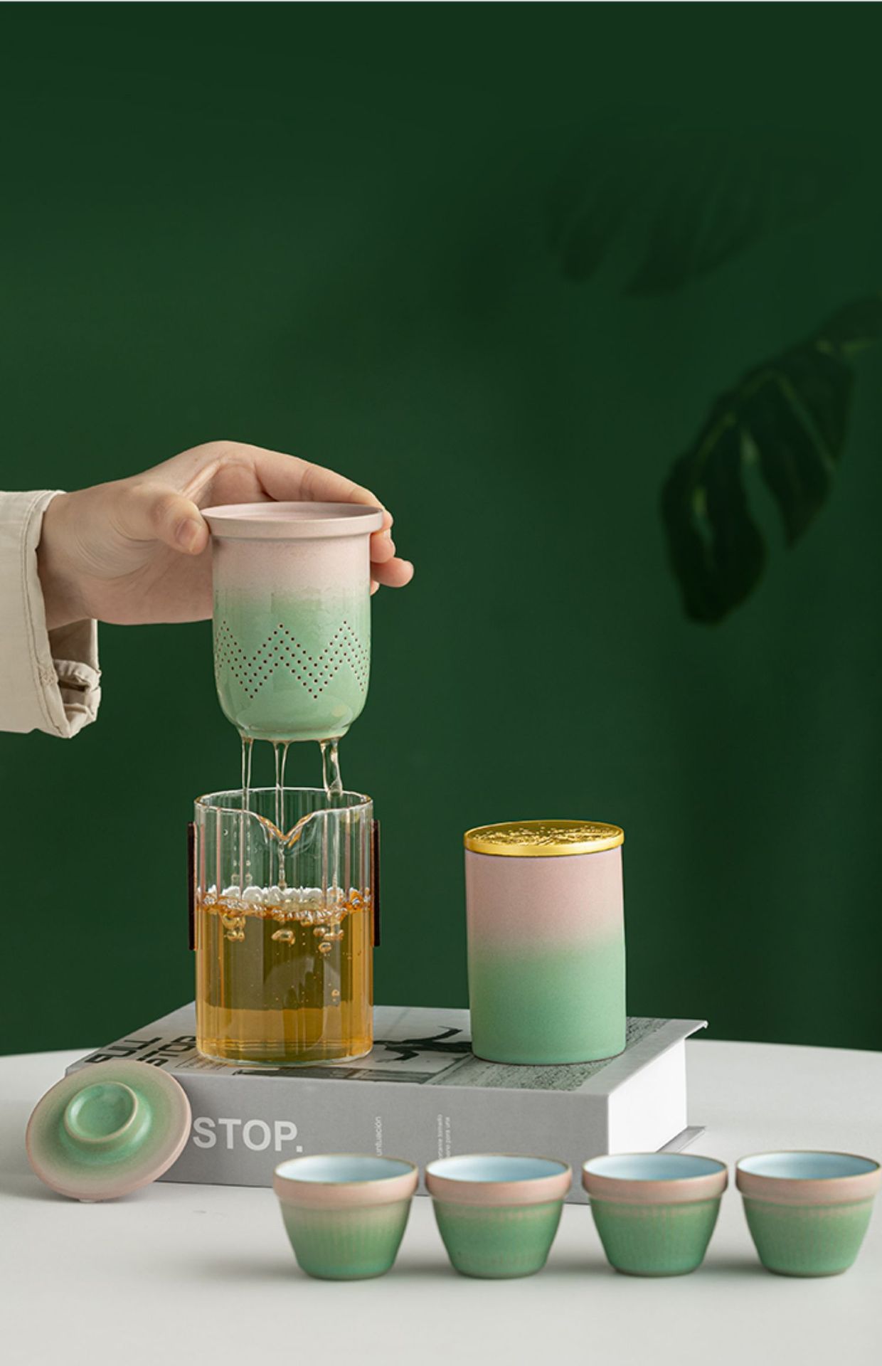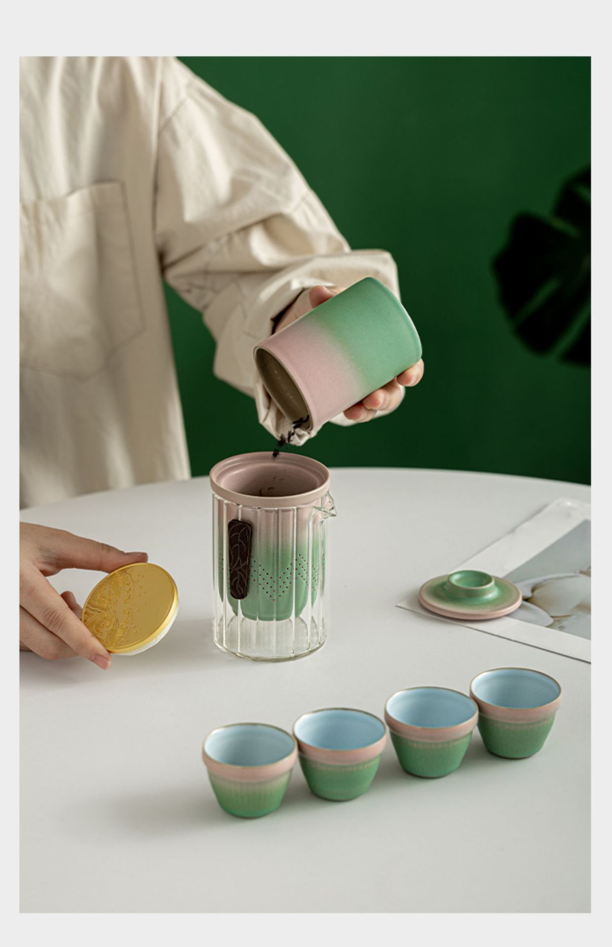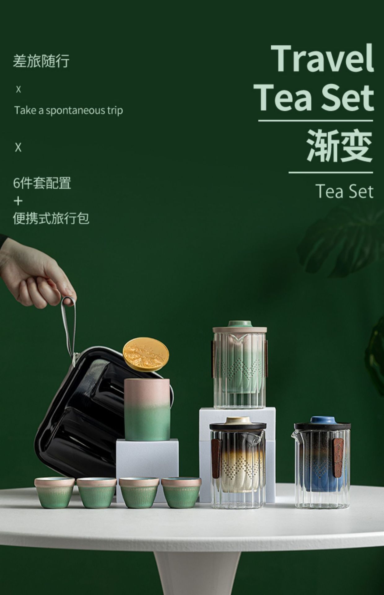 便捷式旅行快客杯玻璃茶具一壶四杯套装店庆纪念伴手礼品定制logo