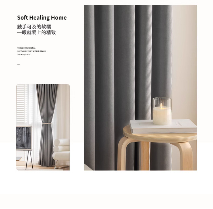 紹興柯橋全遮光断熱柔らかいシェニール寝室客間現代シンプルで贅沢なカーテン生地卸売り