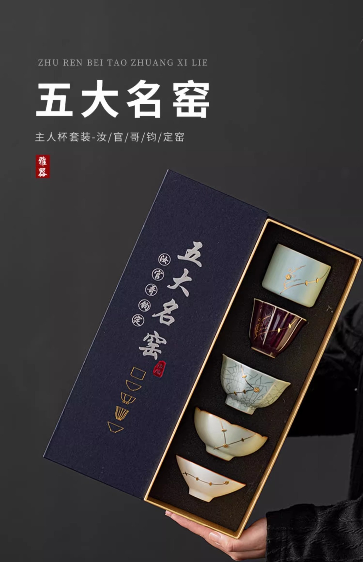 故宫文创五大名窑茶杯手工高档礼盒送长辈老师领导伴手礼品定制