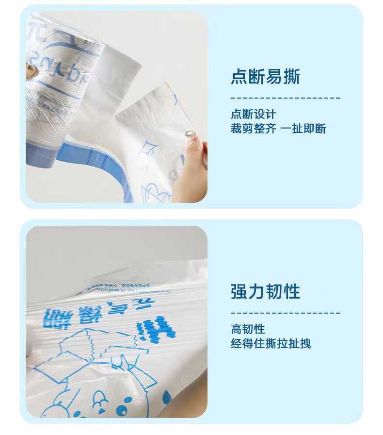 かわいいアニメ高颜値青心兎巾着式家庭用キッチン手持ち式厚手ゴミ袋プリント100本