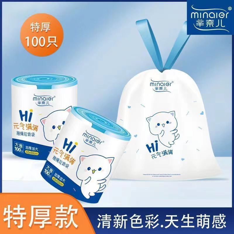 家庭用巾着式手提げネコゴミ袋厨房増厚金手提げオフィス用ビニール袋MU