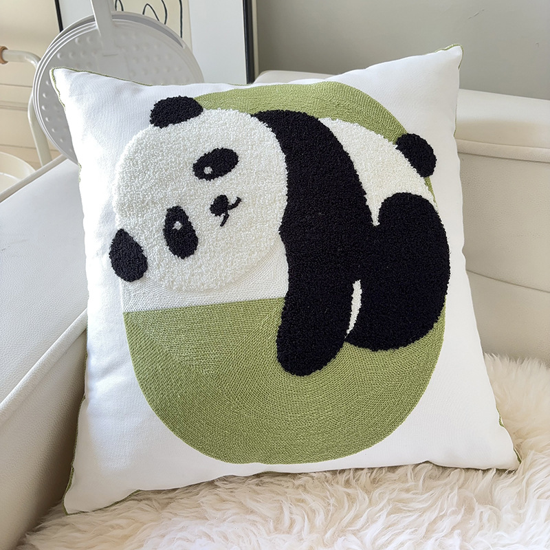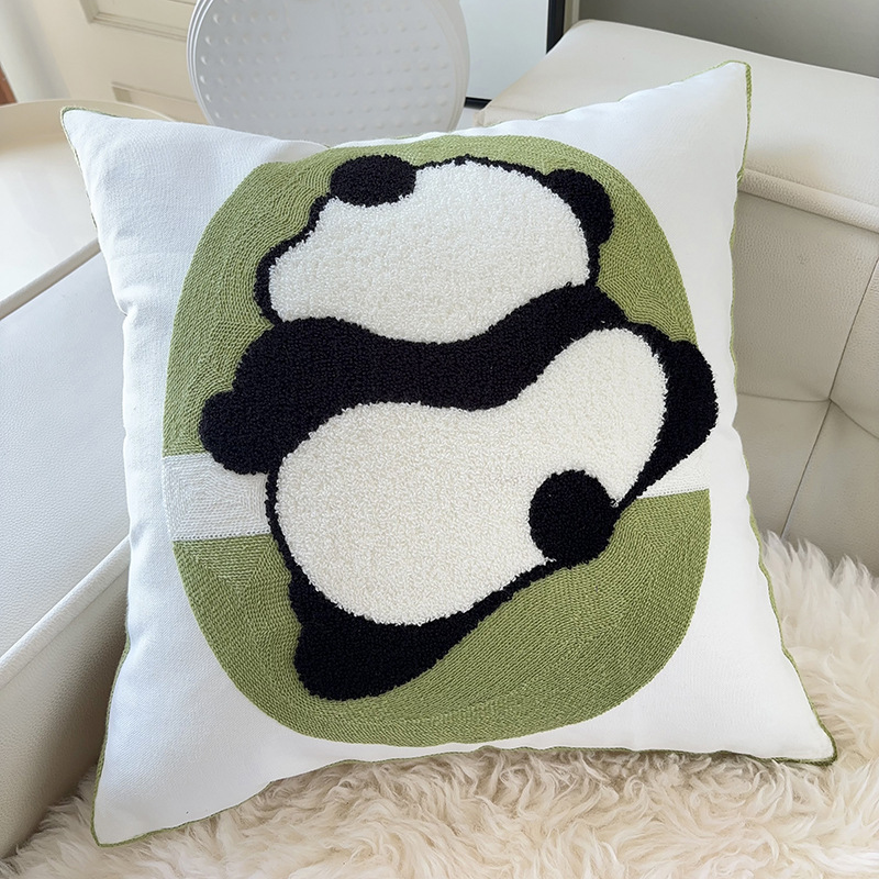 インスタ风可爱い刺繍パンダ抱き枕モダンシンプル漫画ベッドサイドクッションソファリビング民宿枕カバー
