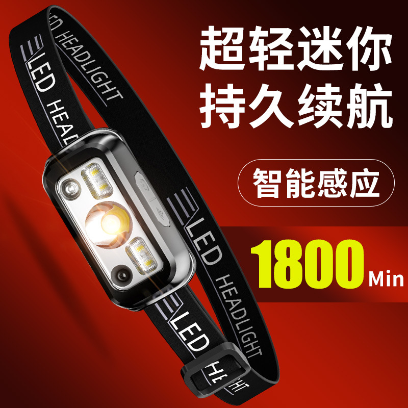 led感应头灯长续航强光usb充电钓鱼迷你红光头戴式户外骑行工作灯