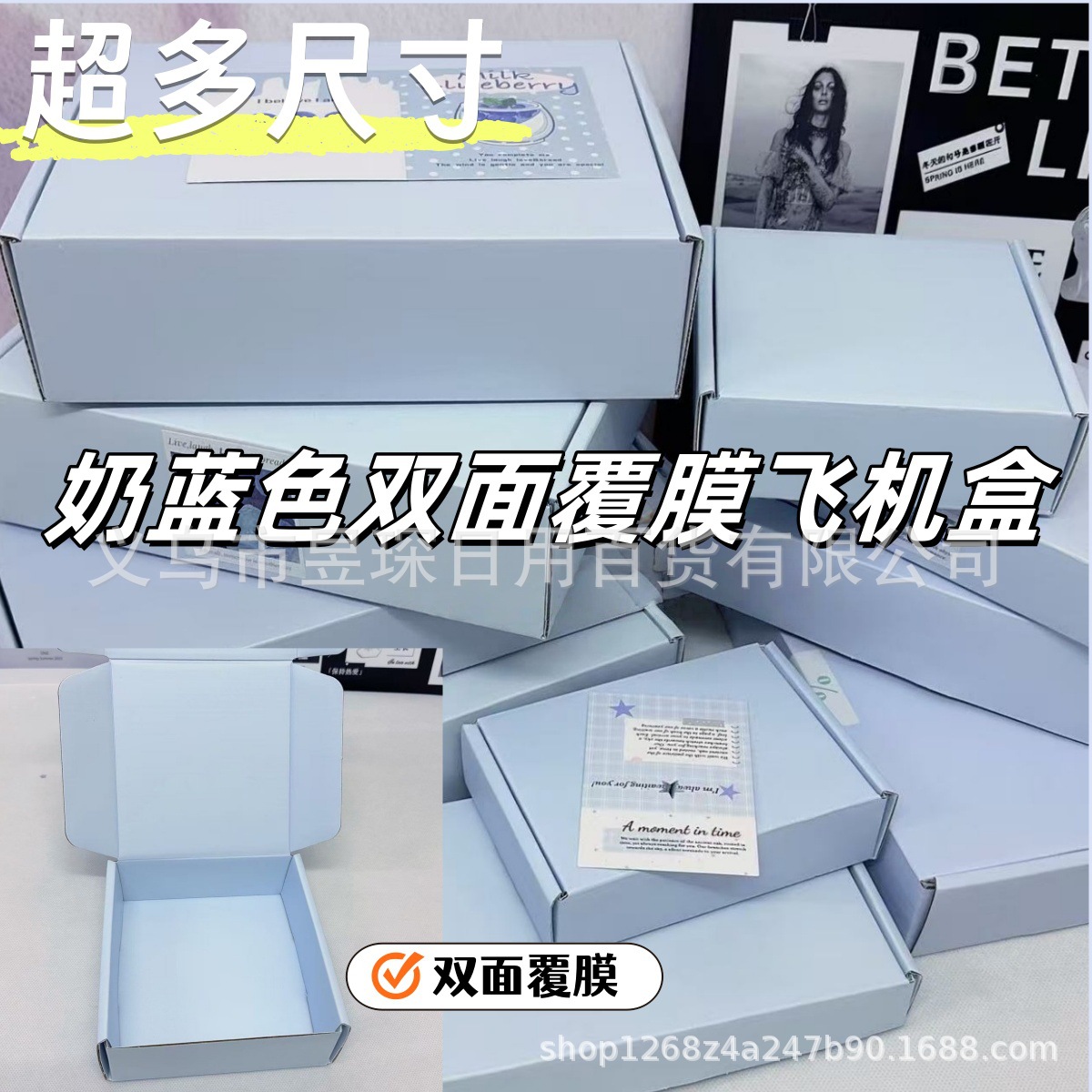 奶蓝色飞机盒高颜值礼物盒出卡打包必备方形长方形快递纸箱出物箱
