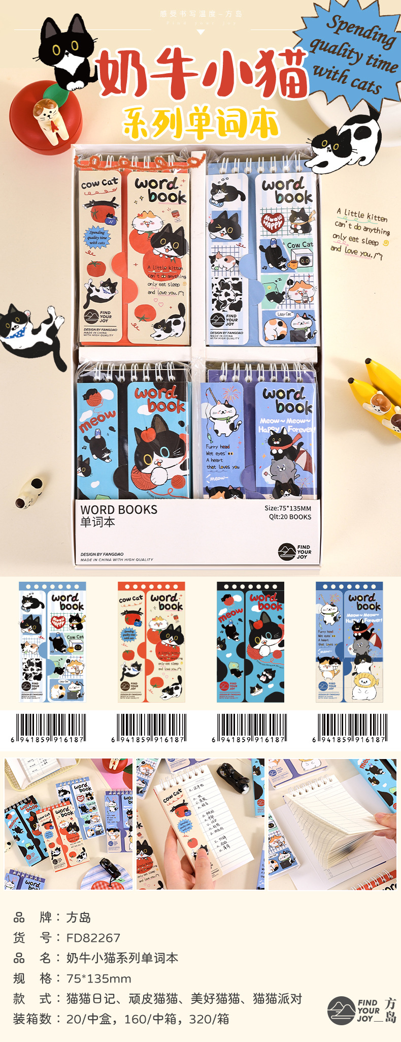 方奶牛小猫系列学生英语默写背诵单词本便携小巧线圈本卡通口袋本