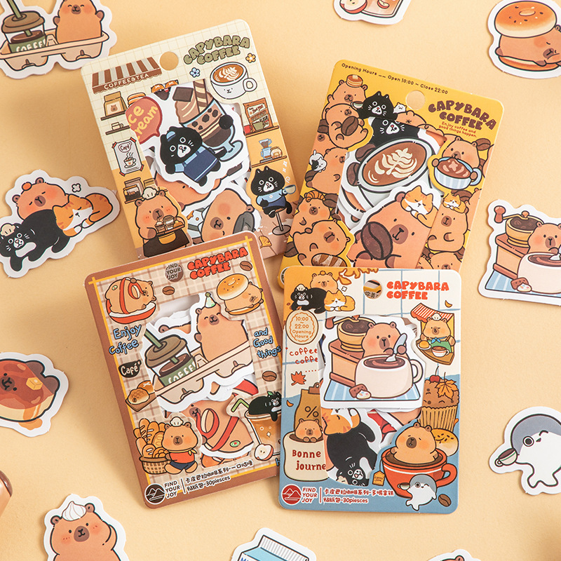 Fangdao Kapibara コーヒーシリーズ カットフリー 漫画 かわいい 子供用 クリエイティブステッカー 高価値ステッカーパック