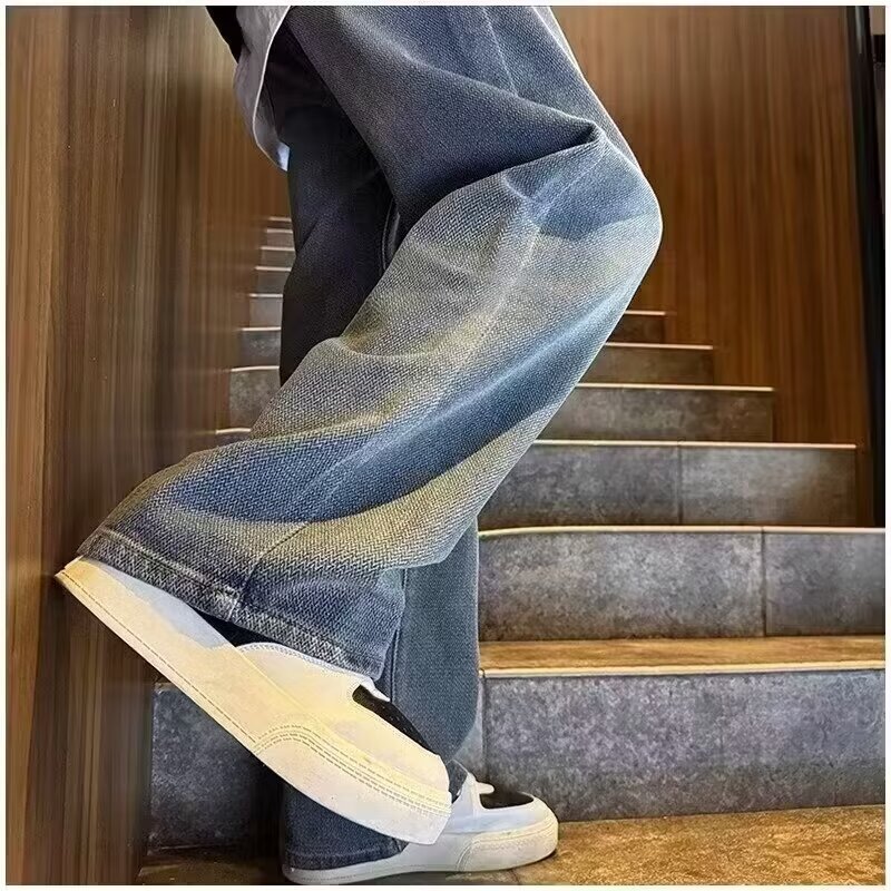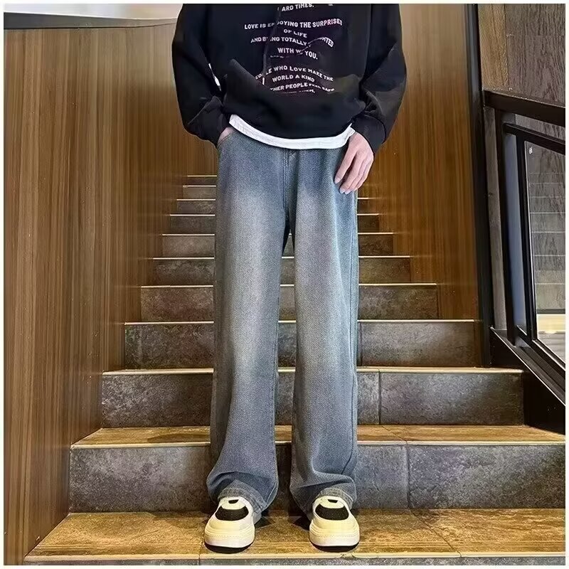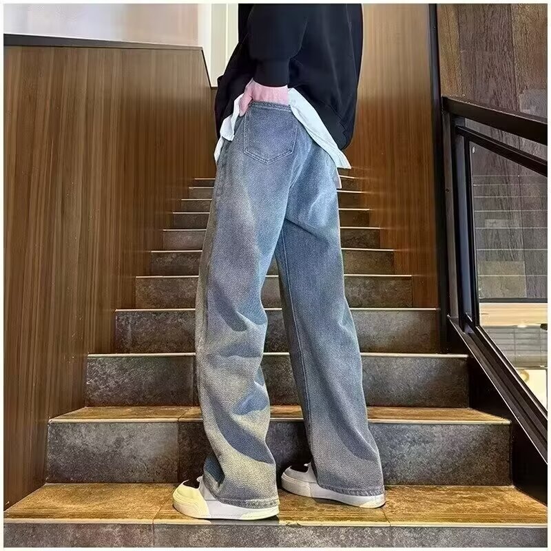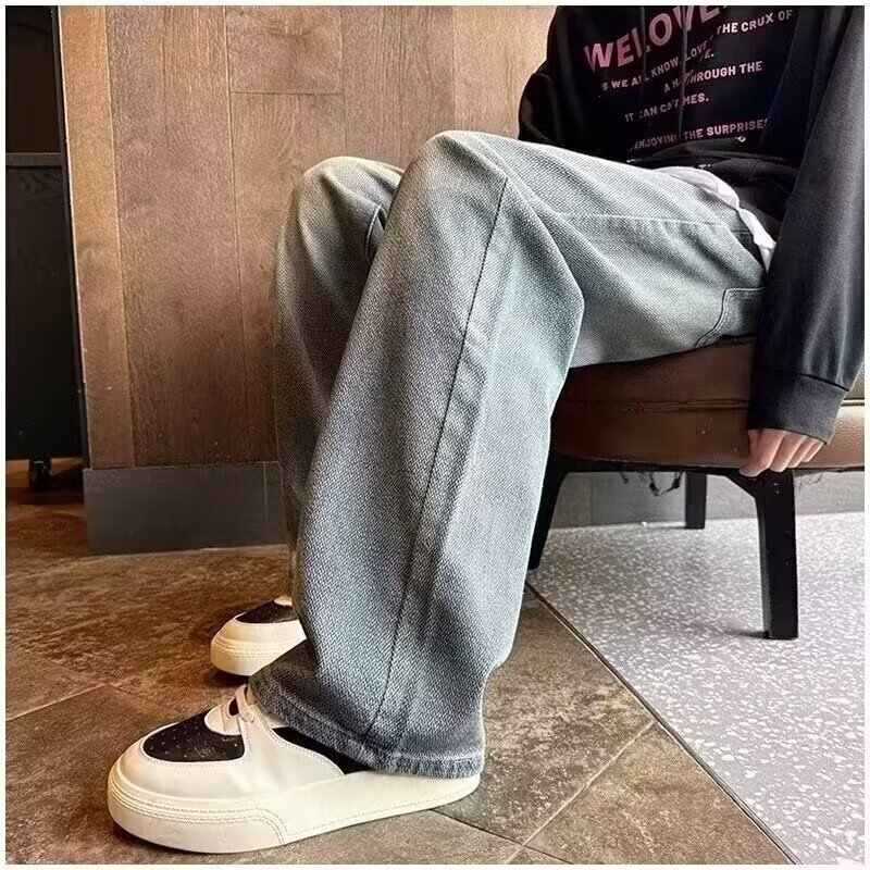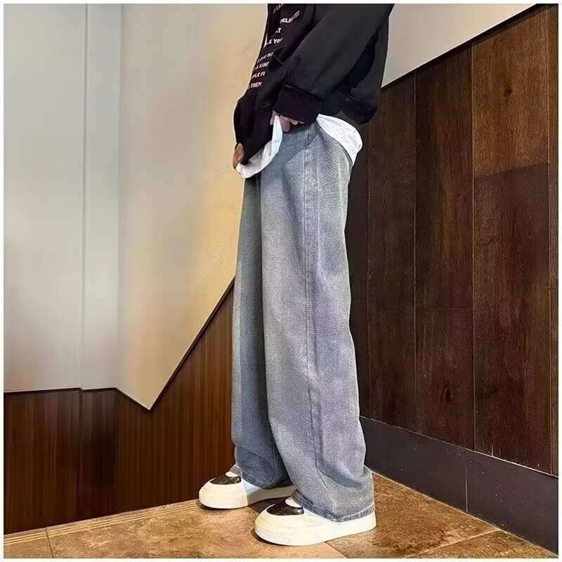 2024夏の星空のジーパンの男性の潮のブランドのまっすぐな筒のゆったりしている広足のズボンのアメリカの復古のカジュアルなズボンの耐摩耗性