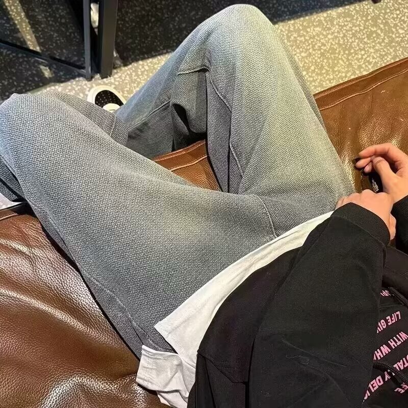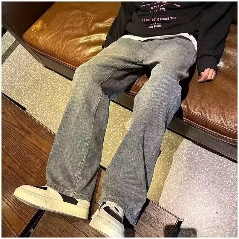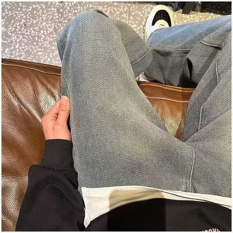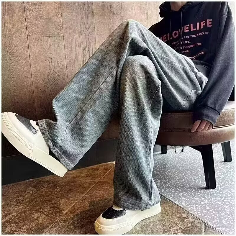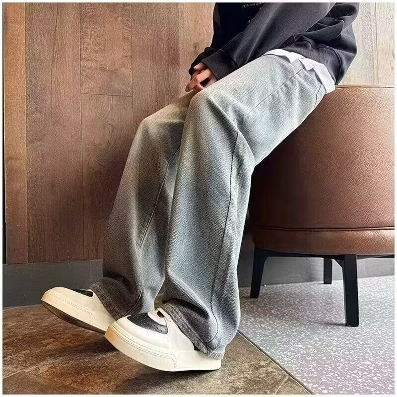 2024夏の星空のジーパンの男性の潮のブランドのまっすぐな筒のゆったりしている広足のズボンのアメリカの復古のカジュアルなズボンの耐摩耗性