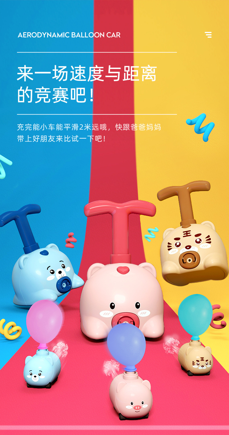 震え音爆発子豚飛天児童知育玩具空気動力車風船車押し恐竜玩具