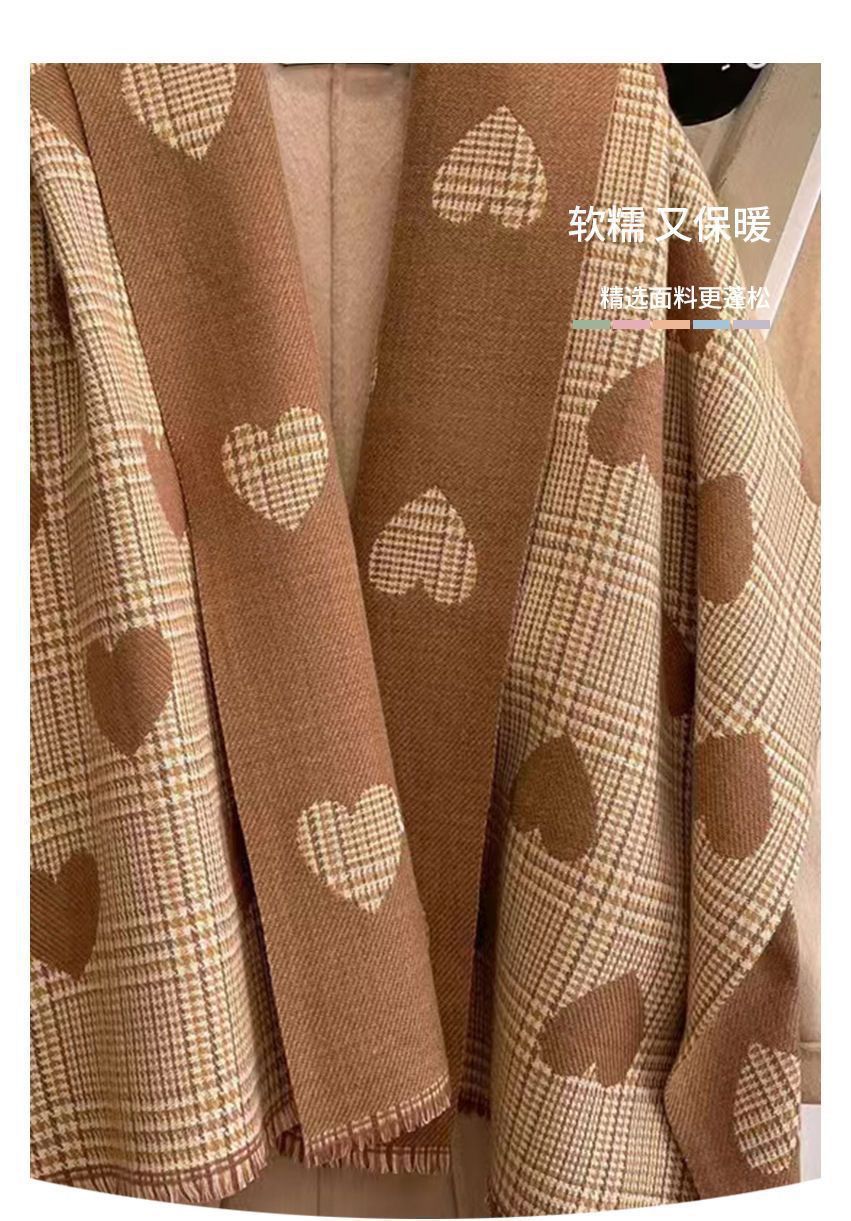 2025跨境新款秋冬女双面大爱心小香风围巾百搭款披肩韩系保暖围脖