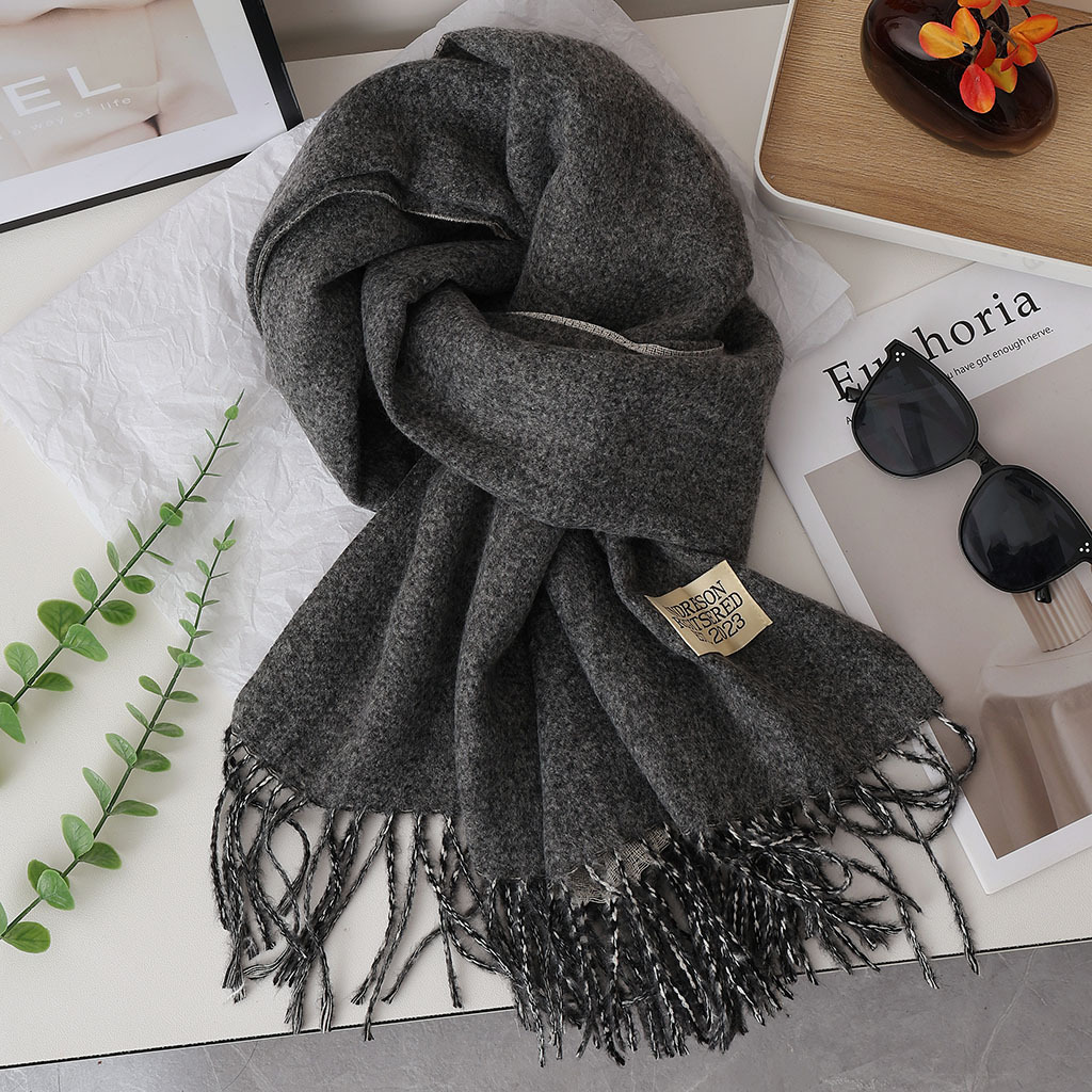 秋の女性用スカーフ、冬のシンプルで汎用性の高い韓国風両面ワイドショール、二重使用可能なイミテーションカシミヤの暖かいネックウォーマー、ロングタイプ